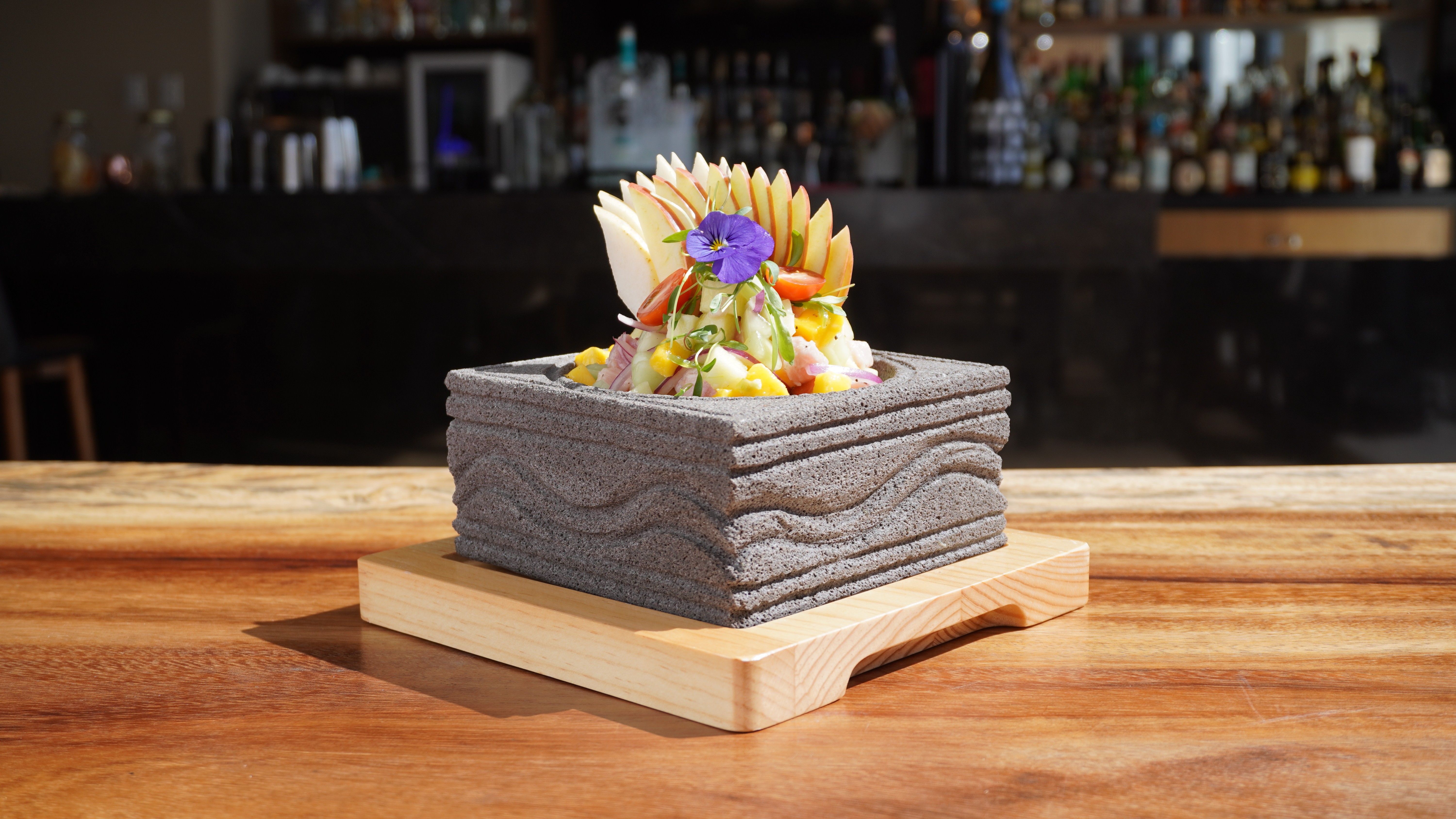 Cada ingrediente, técnica y detalle parte del origen para reinterpretarse con una mirada contemporánea. La cocina y la barra dialogan con la memoria, el fuego y el tiempo, dando forma a una experiencia que honra el arte de vivir México.